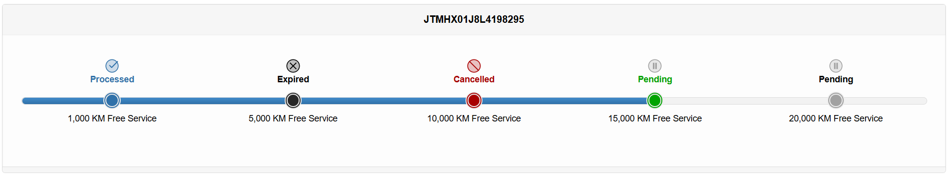 Supports rolling expiry logic - the next service item's activation is based on the previous service's expiry date (Sequencing is done based on the Maximum Kilometerage).